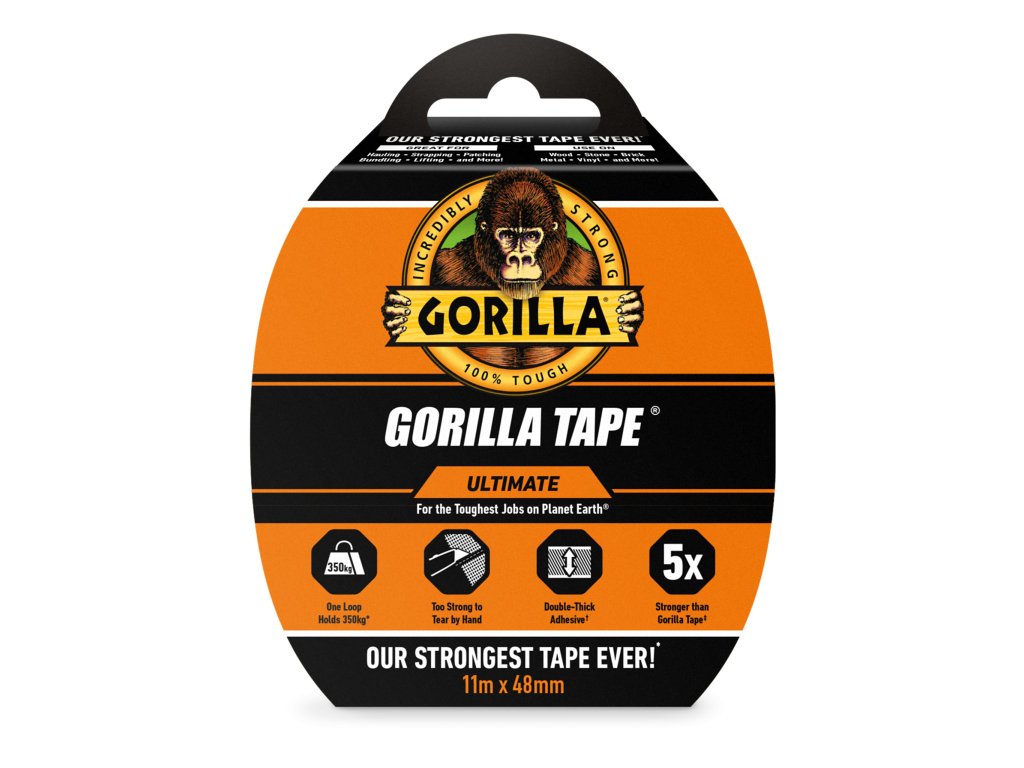 Gorilla Tape Ultimate je 5x pevnější než původní Gorilla Tape, což z ní dělá nejpevnější pásku od Gorilla Glue vůbec!
